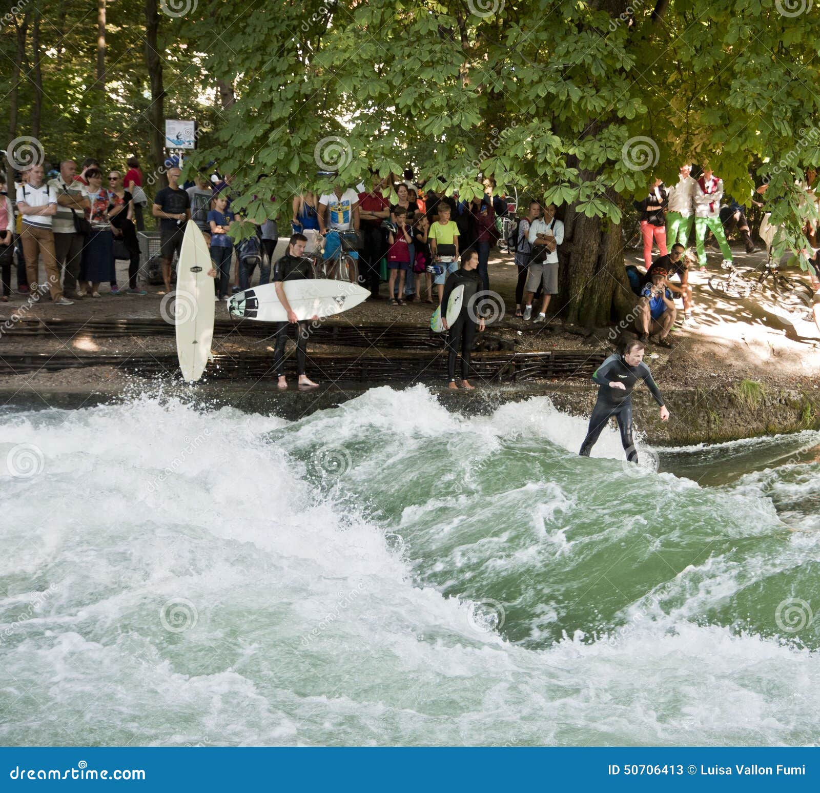 Touristen an der eisbachwelle am englischen garten münchen. Touristen an der eisbachwelle am englischen garten münchen. Das macht die stehende welle am englischen.